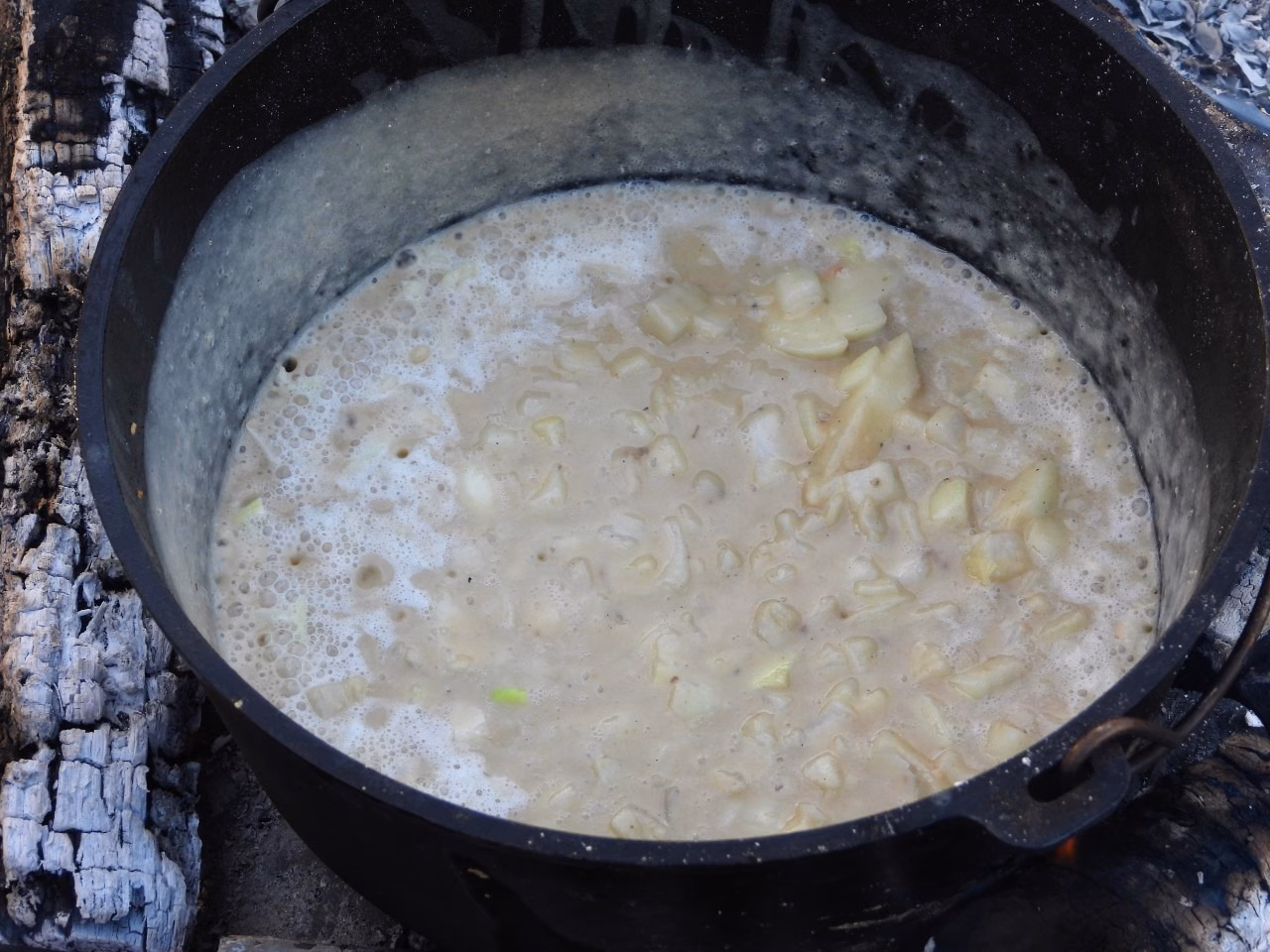 Start by placing your camp-style (with legs) Dutch oven over eight to 10 coals. Add your oil of choice to a depth of about ½-inch.